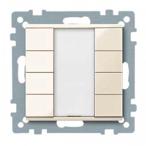 Со встроенным шинным соединителем. Кнопочный выключатель с 8 кнопками управления, индикатором рабочего состояния и полем для надписи. Индикатор рабочего состояния можно использовать также в качестве подсветки для ориентации. Устройство соединяется с линией шины через соединительную клемму шины.