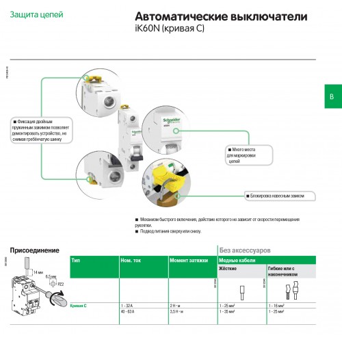 ⚡ Клеммы: Единая клемма (верхняя или нижняя) 1…25 мм² жесткий