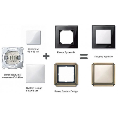 - Используется со следующими компонентами: механизмы 2-клавишных/2-кнопочных выключателей