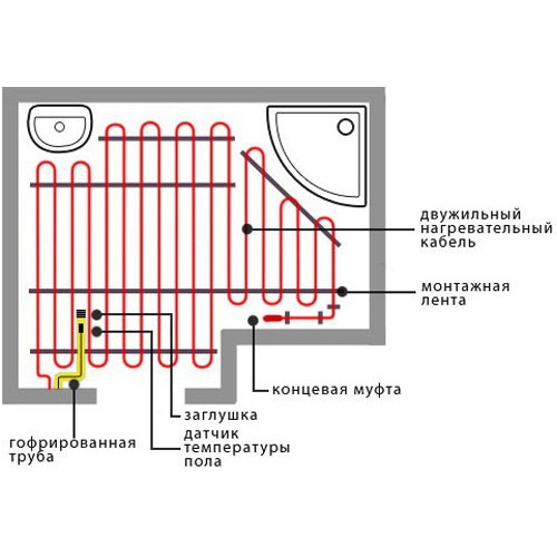 В отличие от одножильного, кабель с двумя нагревательными жилами проще укладывать, так как при этом нет необходимости рассчитывать длину для обратного хода при возврате в начальную точку монтажа.