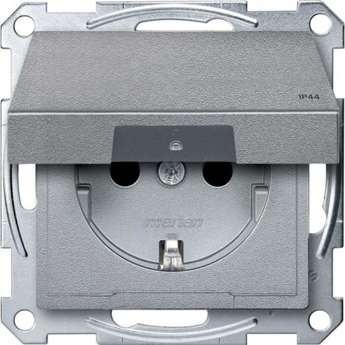 Механизм розетки IP44 с крышкой Merten Shuko, 2 полюса, 16А Алюминий, MTN2314-0460