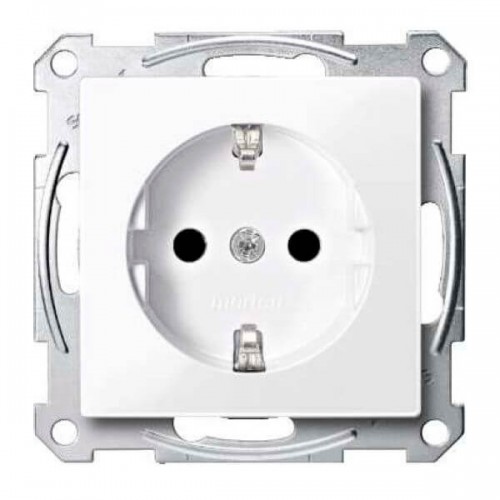 Механизм розетки с защитными шторками, заземлением и накладкой Merten Shuko, 2 полюса, 16А Активный белый, MTN2300-0325