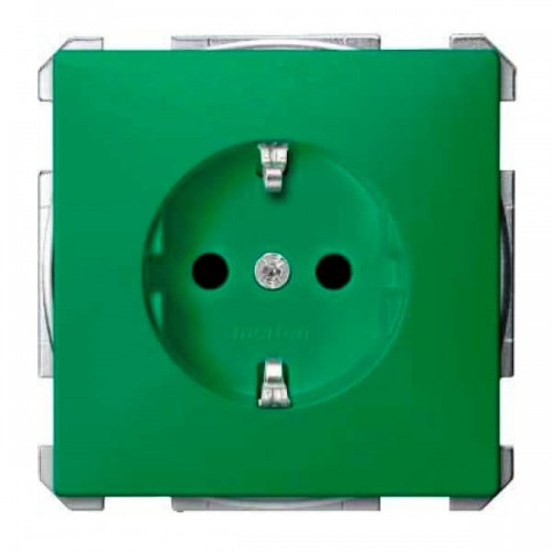 Механизм розетки с защитными шторками, заземлением и накладкой Merten Shuko, 2 полюса, 16А Зеленый, MTN2300-0304