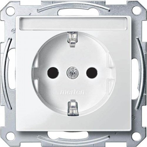 Механизм розетки с заземлением и полем для надписи Merten Shuko, 2 полюса, 16А Полярно-Белый, MTN2302-0319