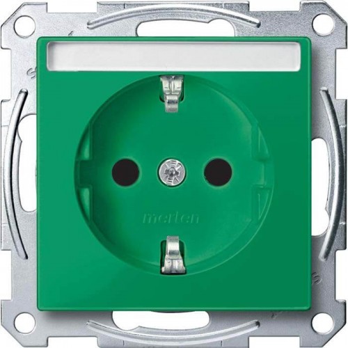 Механизм розетки с заземлением и полем для надписи Merten Shuko, 2 полюса, 16А Зеленый, MTN2302-0304