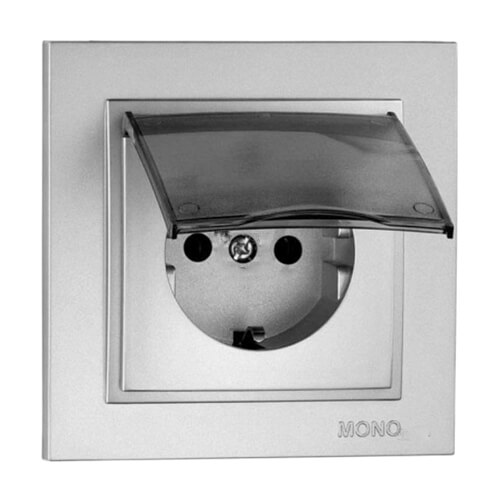 ⚡Розетка c заземлением и крышкой серии Despina (Mono Electric). Цвет Серебро