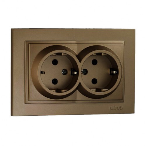 Розетка c заземлением двойная серии Despina (Mono Electric). Цвет Бронза
