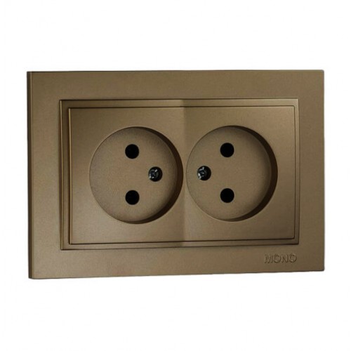 Розетка без заземления двойная серии Despina (Mono Electric). Цвет Бронза