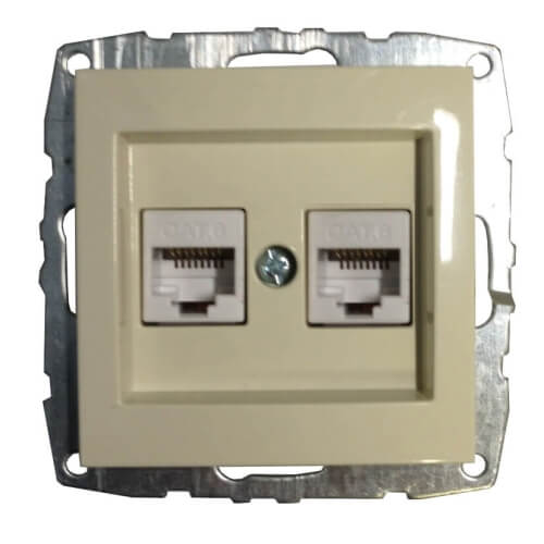 Механизм компьютерной+телефонной розетки серии Despina (Mono Electric) Кремовый с панелью