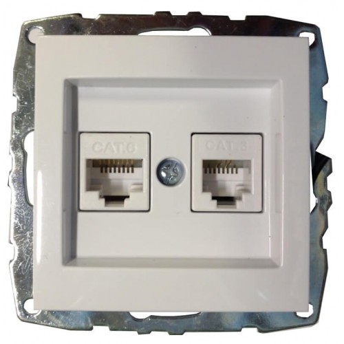 Механизм компьютерной+телефонной розетки серии Despina (Mono Electric) Белая с панелью