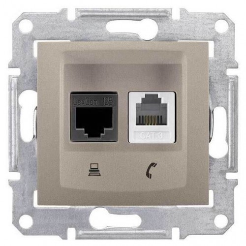 PC + телефонная розетка RJ11 + RJ45, кат. 6, неэкранированная Sedna. Цвет Титан