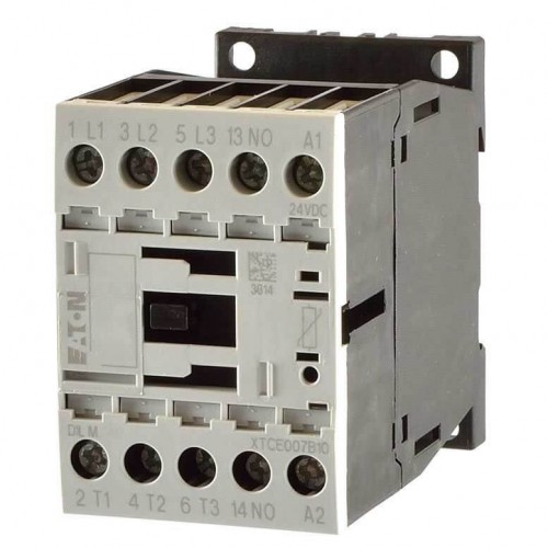 Контакторы применяются для частых коммутаций электродвигателей. Отличие контакторов от автоматических выключателей в том, что контакторы могут коммутировать только номинальные токи и они не предназначаются для отключения токов короткого замыкания. Контакторы серии DILM имеют 1 нормально открытый или 1 нормально закрытый вспомогательный контакт, переключающий цепи сигнализации. Под заказ существует возможность поставки контакторов с различными управляющими напряжениями, пружинными контактами, энергосберегающими катушками, а также в четырехполюсном исполнении.