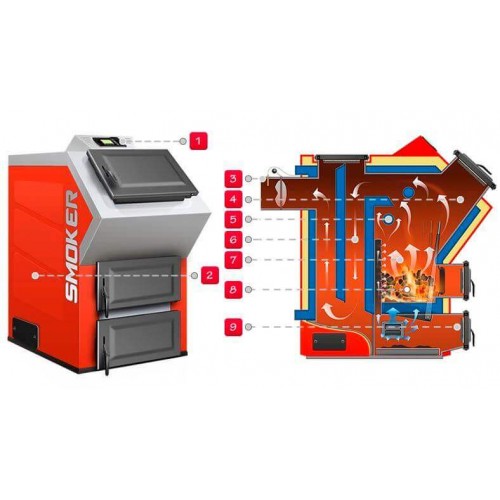 - Котел KOLTON Smoker-12 — это напольный стальной твердотопливный котел верхнего горения, который приспособлен для сжигания больших дров, каменного угля и брикет. Котел рассчитан для обогрева помещений площадью до 110 м². КПД котла составляет порядка 78-85%. Время между загрузками составляет от 12 до 24 часов, в зависимости от степени утепления дома и температуры на улице.