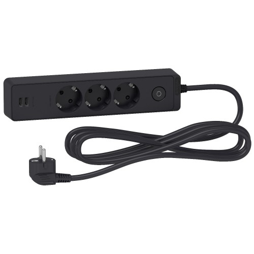 Діапазон Unica Тип виробу або компоненту Зворотний відвід Назва колекції Unica Extend Форма Квадратний Тип управління Мережевий вимикач Кількість розеток 3 Кількість силових розеток 3 Тип інтегрованого зв'язку 2 Порт USB 5 В DC 2.4 A Колір Чорний Довжина кабелю 3 м