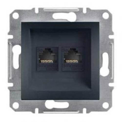 Розетка подвійна комп'ютерна категорії 6e UTP Asfora антрацит (EPH4800171)