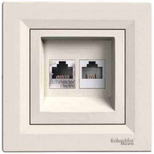 Розетка подвійна телефонна RJ11 + комп'ютерна RJ45 Asfora кремова (EPH4900123)