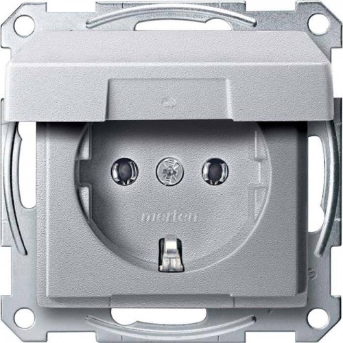 Механізм розетки з кришкою та шторками Merten Shuko, 2 полюса, 16А. Колір Алюміній, MTN2310-0460