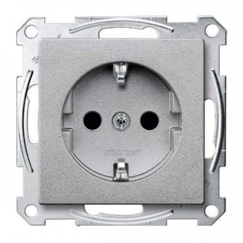 Механізм розетки з захисними шторками, заземленням та накладкою Merten Shuko, 2 полюса, 16А. Колір Алюміній, MTN2300-0460