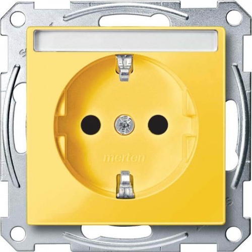 Механізм розетки з заземленням та полем для напису Merten Shuko, 2 полюса, 16А. Колір Жовтий, MTN2302-0307