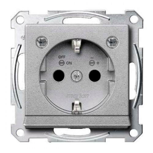 Механізм розетки з заземленням, захисними шторками, накладкою та підсвічуванням Merten Shuko, 2 полюса, 16А. Колір Алюміній