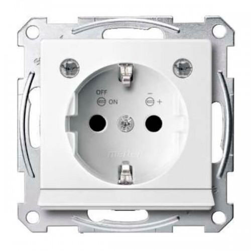Механізм розетки з заземленням, захисн. шторками, накладкою и підсвічуванням Merten Shuko, 2 полюса, 16А полярно-білий (MTN2304-0319)