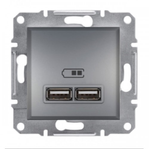 Механізм USB-розетки Asfora 2.1 A (2 входи) сталь (EPH2700262)