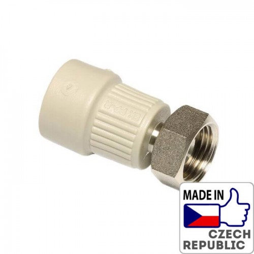 PP-R Переход с цельнометаллической вставкой и перекидной гайкой с отверстием для пломбы 3/4”x20мм, Wavin Ekoplastik