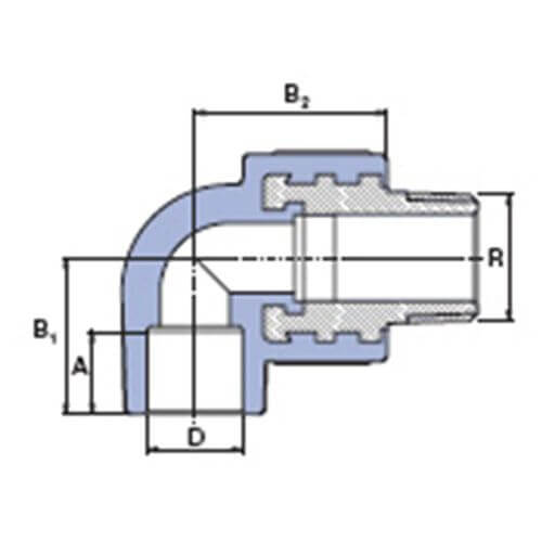 PP-R Угольник 90º с металлической наружной резьбой 1”x32мм, Wavin Ekoplastik