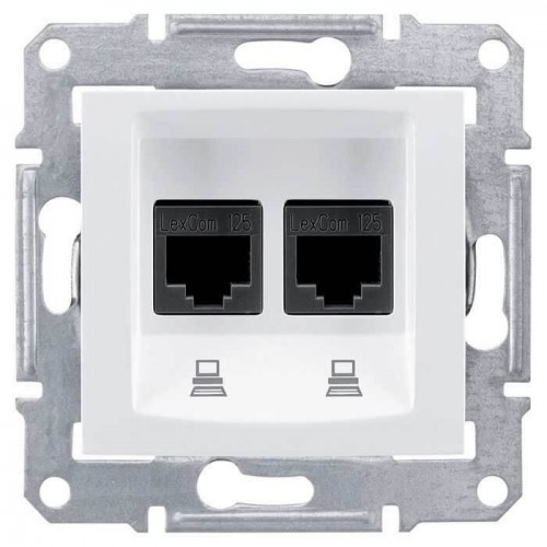 Компьютерная розетка двойная UTP RJ45 кат.6 экранированная Sedna. Цвет Белый