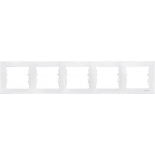 Механизмы розеток и выключателей серии Sedna требуют использования декоративных рамок, с которыми их внешний вид становится более эффектным. Купить декоративную рамку белого цвета 5-постовую горизонтальную от Schneider Electric серии Sedna (SDN5800921) стоит из-за превосходного качества глянцевого пластика, простоты установки (обычным надавливанием в четырех местах) и надежности креплений.