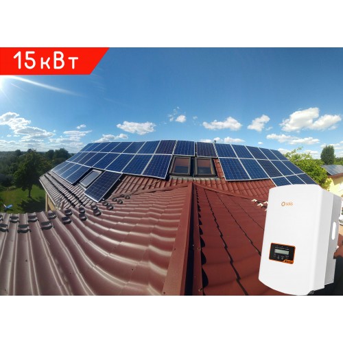 Сонянча електростанція 15 кВт, ціна на яку формується з базового комплекту та монтажних робіт, складається з наступної комплектації.