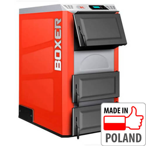- Котел Boxer-17 оснащенный электронным регулятором температуры и вентилятором вторичного воздуха, который удерживает заданную пользователем температуру в котле, управляя работой циркуляционного насоса Ц.О. и насоса горячего водоснабжения. Котел Boxer-17 также может быть приспособлен к работе с регулятором тяги.