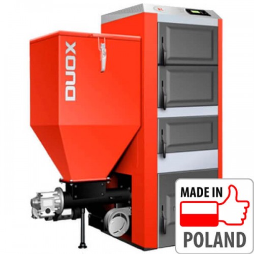 Котлы производства Kolton серии DUOX представляют собой конструкцию с двумя камерами сгорания: нижней, с автоматической ретортной горелкой, сделанной из жаропрочного чугуна и верхней с колосниками, охлаждаемые водой. Особенностью котла является большая камера сгорания, которая позволяет с хорошим успехом сжигать твердое топливо в виде древесины и угля. Важным качеством котла DUOX есть его плотная конструкция, более легкий доступ для чистки котла (спереди) и небольшие требования относительно дымоходной тяги. Котел стандартно оснащен в расширенную, но легкую в обслуживании систему управления котлом и четырьмя насосами отопительной системы (насос Ц.О., насос теплой бытовой воды, насос напольного отопления и циркуляционный насос). Котлы DUOX дополнительно могут быть оснащены системой trio, которая повышает эффективность сжигания эко горошка, угольной мелочи и биомассы в виде пеллета.