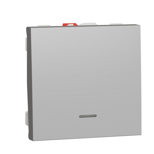 Выключатель одноклавишный кнопочный с подсветкой сх.1а 10А 2 модуля Unica New алюминий (NU320630N)