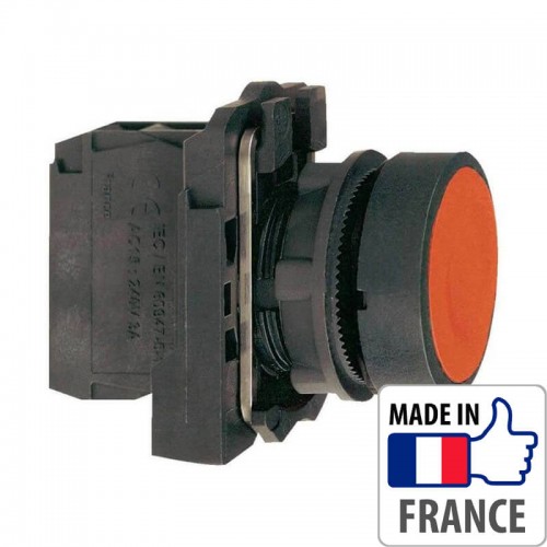 Кнопка с пружинным возвратом Schneider XB5-A имеет пластиковое основание.